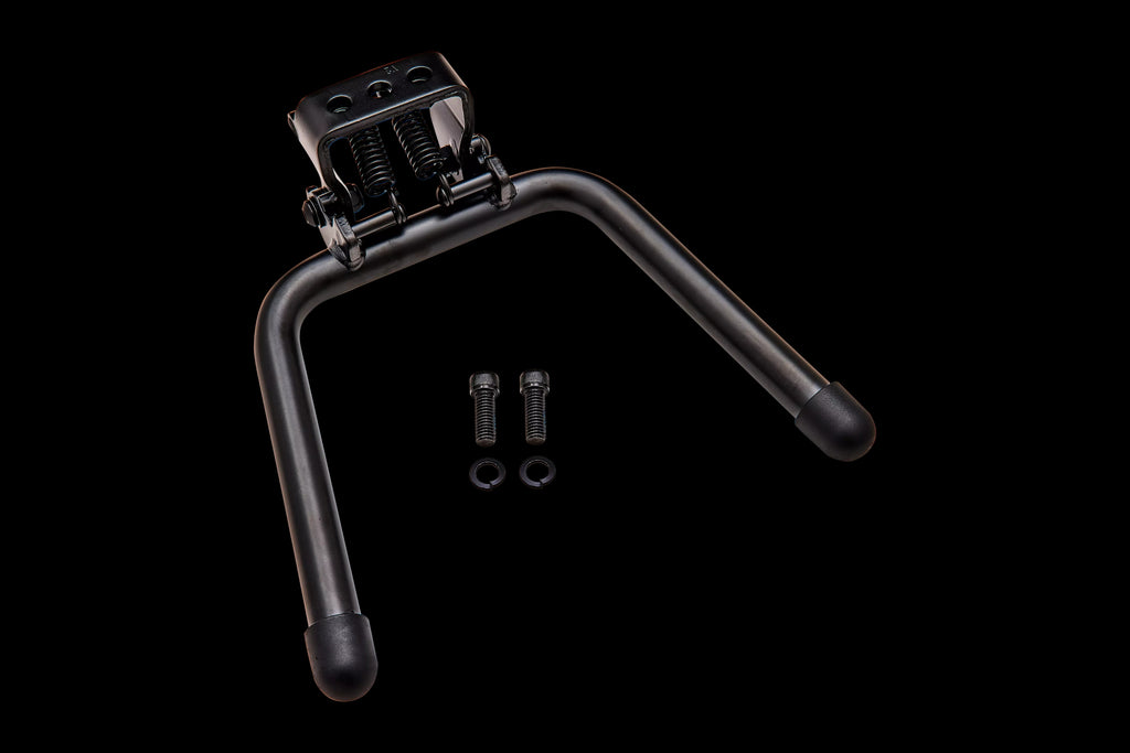 Center mount folding double leg kickstand for Globe Haul ST model bikes. Improved springs and pivot mounting hardware.
